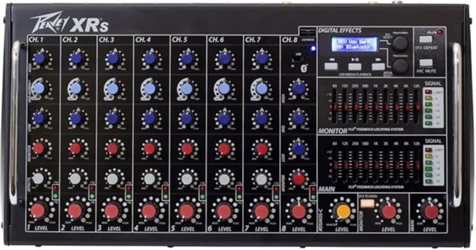 - XR-S este echipat cu efecte digitale integrate și funcții de ultimă generație disponibile doar la Peavey, cum ar fi MidMorph și FLS (Feedback Locating System). În plus, mixerul include funcția exclusivă de amplificare a basului KOSMOS de la Peavey, care adaugă un răspuns la frecvențele joase și crește claritatea frecvențelor înalte. XR-S dispune, de asemenea, de conectivitate wireless Bluetooth pentru redarea audio de pe orice dispozitiv inteligent echipat cu Bluetooth sau de pe o unitate USB „jump”.